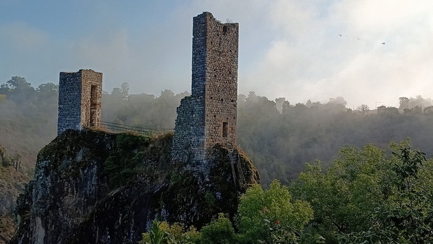 Montet, très beau point de vue sur Peyrusse. Le Donjon et les tours